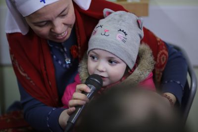 В программу праздника, по традиции, входил просмотр добрых мультфильмов, интересные рассказы (на этот раз – об артосе и других пасхальных традициях). Конечно, среди гостей было много детей. Искреннее детское чтение стихотворений, живые дружные слова «Воистину Воскресе» усиливали радостную атмосферу.