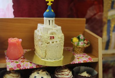 4 мая 2014 года класс церковно-приходской воскресной школы преобразился: на учебных столах появились разнообразные поделки – яркие, добротные и изящные – изделия, искусно выполненными мастерицами и рукодельницами. Всеобщее внимание привлекал аппетитный уголок с куличами и сладостями. На самой верхней полке – храм Державной иконы Божией Матери – призер в конкурсе «Пасхальный кулич»: не поверишь, что съедобный!