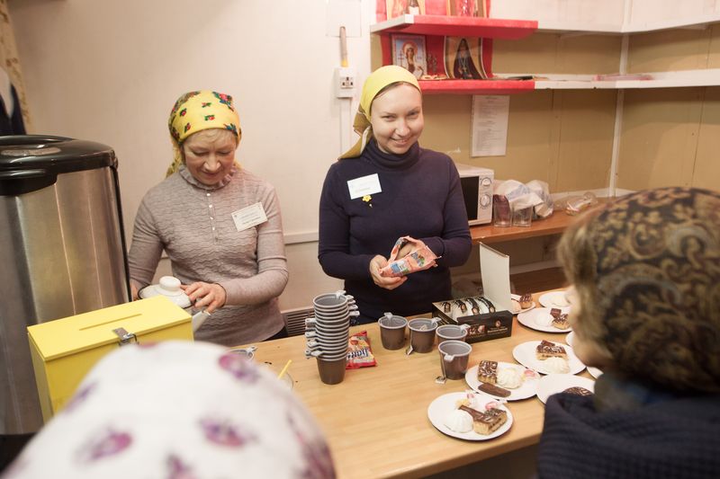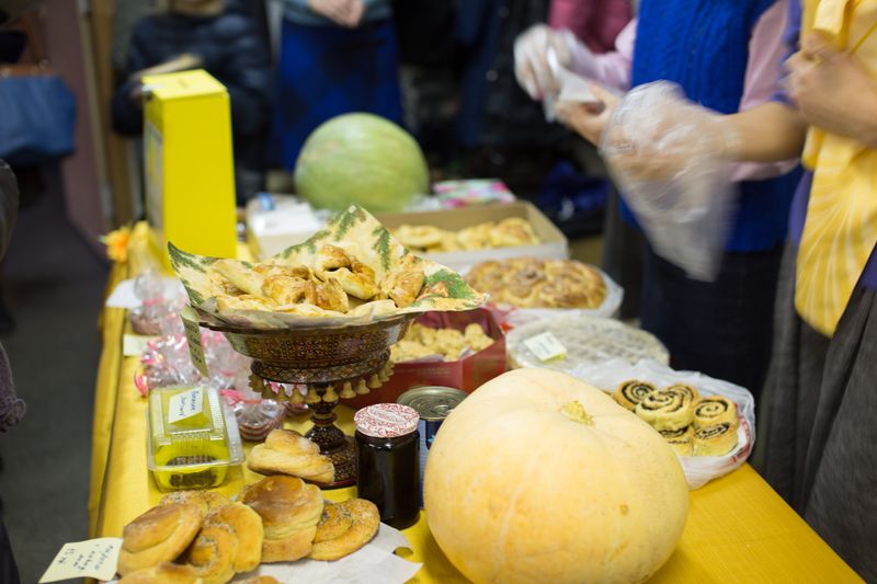 В классе №1 Церковно-приходской школы можно было приобрести домашнюю выпечку и работы, сделанные руками детей и взрослых прихожан.