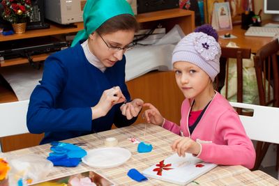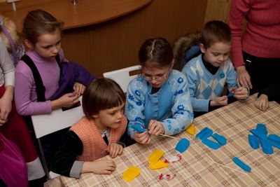 А в "маленьком классе" Церковно-приходской школы проводился мастер-класс для детей по изготовлению Рождественских сувениров - цветочков.