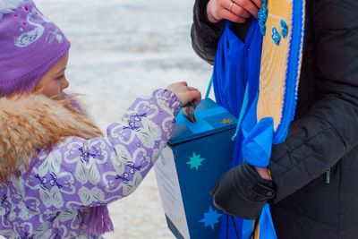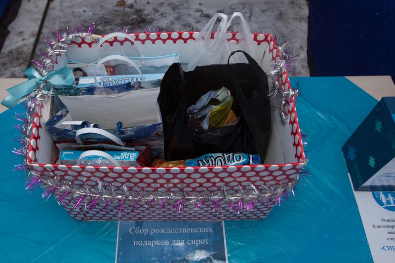 На улице принимались Рождественские подарки для детей.